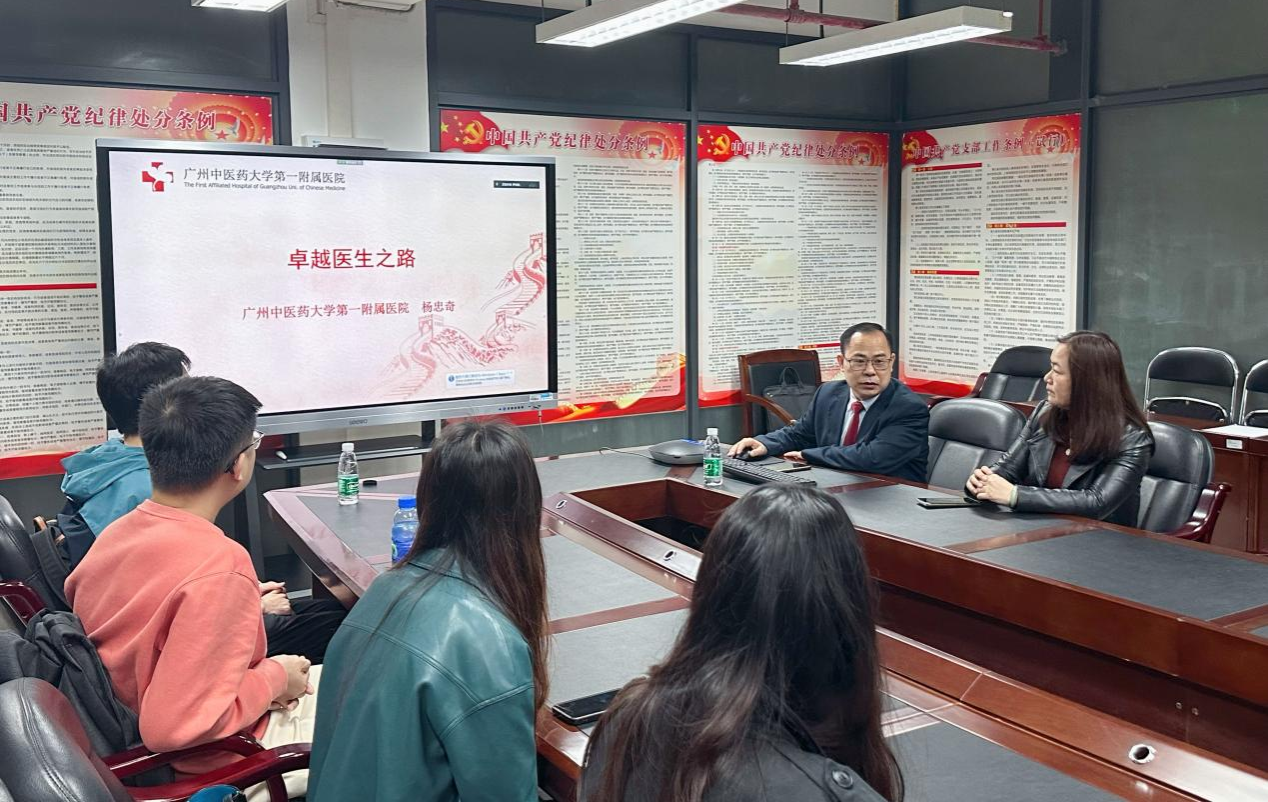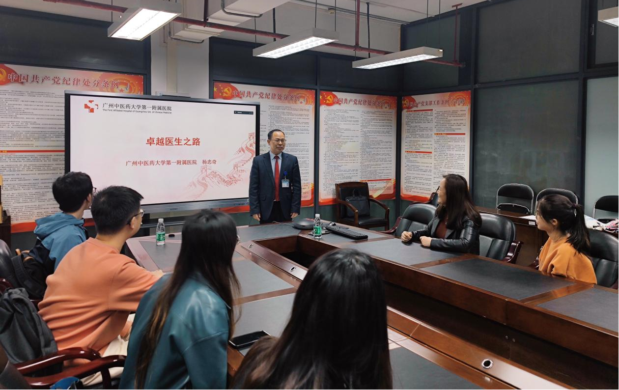 在思政第一课上,杨院长从追溯广州中医药大学第一附属医院名医历史、我院医护人员在新冠疫情方面的卓越贡献等多个方面,向同学们呈现了我院在推动中医药发展取得的显著成果。杨院长指出:“临床疗效是生命线”,强调医学科学研究要以“临床价值”为导向,用证据说话,彰显中医药疗效。谈及科研工作的开展,结合习近平总书记在北京考察新冠肺炎防控科研攻关工作的讲话内容,杨院长强调:人类同疾病较量最有力的武器就是科学技术,指出科技攻关是重大而紧迫任务,他鼓励同学们通过科学的手段把中医药知识“讲清楚,说明白”,进一步推动中医药文化的普及。同时,杨院长分享了他的武汉抗疫之旅,让同学们切实感受到中医药在抗疫之战的重要作用,也看见了党员先锋的英勇无畏,更深深地体会到了中国共产党的领导和中国特色社会主义制度的显著优势。