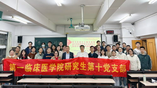 一春略无十日晴,处处浮云将雨行。连日的阴雨绵绵,也阻挡不了学习的热情。2023年3月28日晚上7点,yl23455永利官网(第一附属医院)副院长关彤在三元里校区综教楼306室为教学党总支研究生第十党支部(2021级博士班)的成员上了一堂深刻的党课。为了深入学习、贯彻落实党的二十大精神,关彤副院长以“马克思主义基本原理同中华优秀传统文化相结合促进中医药传承创新发展”为主题进行了授课。