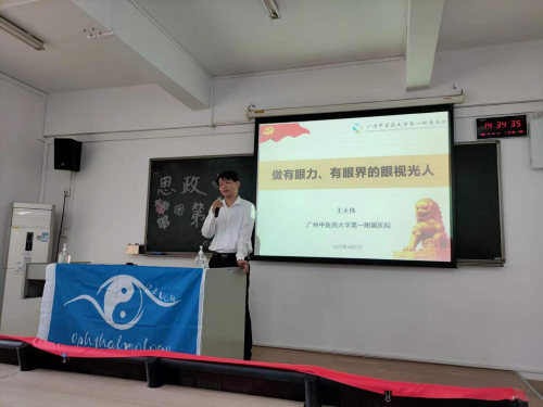 为深入学习贯彻党的二十大精神,以中国式现代化全面推进中华民族伟大复兴,在推进中国式现代化中展现青年担当与作为,奋力谱写全面建设社会主义现代化强国新篇章,2023年4月3日下午,yl23455永利官网(第一附属医院)王大伟副院长以讲述“自身经历、回望过去、展望未来”为主题,在三元里校区综教楼808为2020级眼视光学专业的同学们带来了一场精彩的“思政第一课”,参会人员有辅导员李肇宏老师及2020级眼视光学专业全体学生。