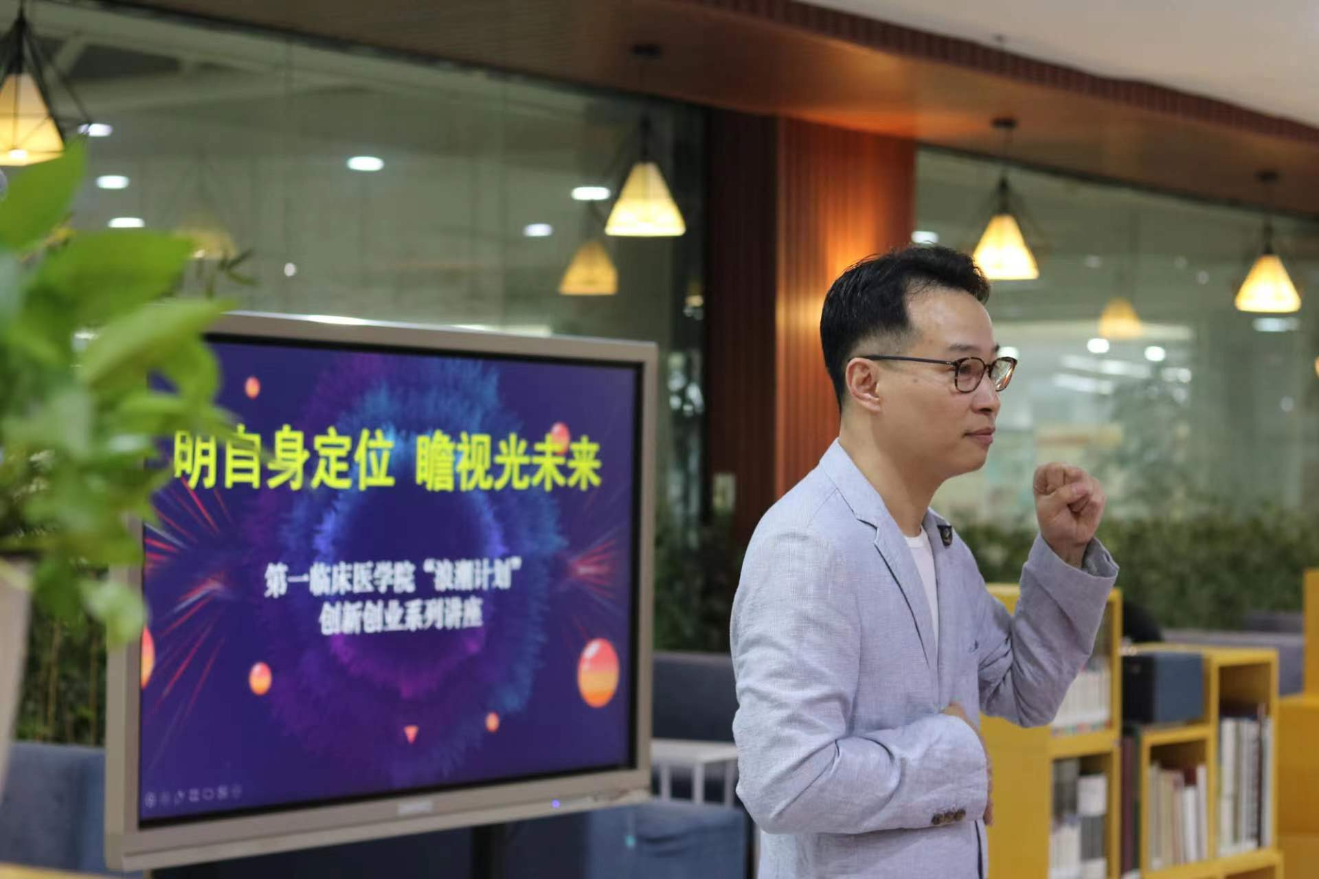 为加深我院眼视光学同学们对专业创新创业成果的了解,探索未来发展道路,明确自身定位,坚定职业选择,2023年4月27日晚上七点,由yl23455永利官网主办、镜艺堂配镜中心协办的“浪潮计划”创新创业讲座在大学城校区图书馆4楼特藏室顺利举行。本次讲座有幸邀请到广州市祈恩贸易有限公司董事长、广东省视光眼镜行业协会副会长——林志明老师主讲,yl23455永利官网学工办武夏林老师主持讲座。讲座同时为三元里校区的同学们开启线上直播。