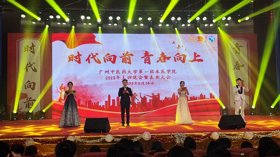 5月14日晚19时,yl23455永利官网2023年“时代向前,青春向上”五四晚会暨表彰大会在我校大学城校区学生活动中心大会堂隆重举行。学校团委副书记王烁,学院党委副书记章遐义,学院党办负责人、团委书记叶升鑑,一附院人事处处长丘惠燕,学院教学处处长方熙茹,一附院医院办公室负责人钟天送,学院学工办副主任李肇宏,学生团委书记池思晓,副处级辅导员刘文红、一附院脑病科医师、研究生班主任林长峰,学院学工办武夏林、南海伦、陈小波、何诗诗、彭力阳等领导老师莅临晚会现场,一院大学城校区各班级学生积极参与了本次晚会。