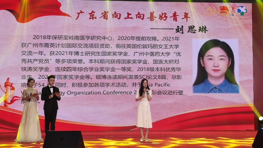 为发挥榜样作用,激励一院学子锐意进取,晚会对学院本年度表现优异的个人和集体进行了表彰,还邀请了“广东省向上向善好青年”刘思琳、倪世豪、“广东省优秀共青团员”徐晓凡、“2022年校园十大年度人物”谢铱子进行经验分享。优秀代表们真诚、朴实的分享,进一步鼓舞着我院学子坚定理想信念,练就过硬本领,以青春之奋斗为党和国家的事业增砖添瓦。