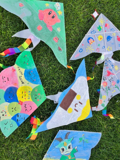 (同学们与风筝合影留念)