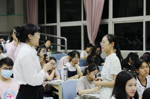 在短暂的中场休息后,本年度首场社会实践知识技能培训会开始。本次培训会邀请到我校公共卫生与管理学院应用心理学系主任、中医心理学博士生导师黄时华老师为同学们进行“如何撰写大学生‘三下乡’社会实践活动调研报告”主题培训。黄老师以“五个手指”生动地引入主题,从为什么要进行调研活动、确定调研活动主题、策划调研方案、完成调研过程、撰写调研报告这几个方面来进行讲解。过程中,黄老师与队伍代表亲切互动交流本年度调研情况,并以此为例与同学们在选题方面进行深入解读。随后进入答疑环节,黄老师对同学们的提问进行耐心解答。干货满满的知识技能培训在同学们热烈的掌声中圆满结束。