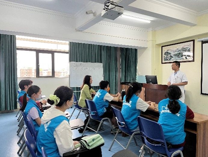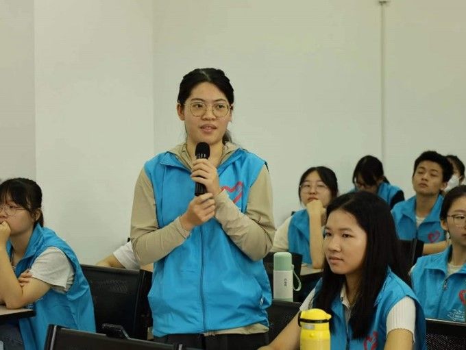 培训环节,一院学生团委书记、本次志愿活动主要负责人池思晓老师对本次医学人文志愿者进病房项目进行了介绍,并以“探索沟通艺术,走进患者的心世界”为主题向与会志愿者们讲授了如何与患者建立信任关系、如何进行有效的沟通,以及介绍了沟通中的三大法宝——“倾听”、“共情”和“积极关注”。我院肿瘤中心青年文明号号长陈尧老师则重点介绍了肿瘤中心医学人文病房的建设情况,通过讲解和展示历届活动的影像资料,使志愿者们更加直观地感受到医学人文氛围的营造对于提升患者就医体验,促进患者身心健康的重要作用。我院乳腺科青年文明号副号长林曼迪老师以过去十年间发生的恶性伤医事件为切入点,强调建立良好医患关系的重要性,并通过对乳腺科“粉红丝带月”活动的介绍,以及对医学人文平行病历书写的讲述等,使志愿者们对于如何开展医学人文志愿服务有了更多的信心与期待。
